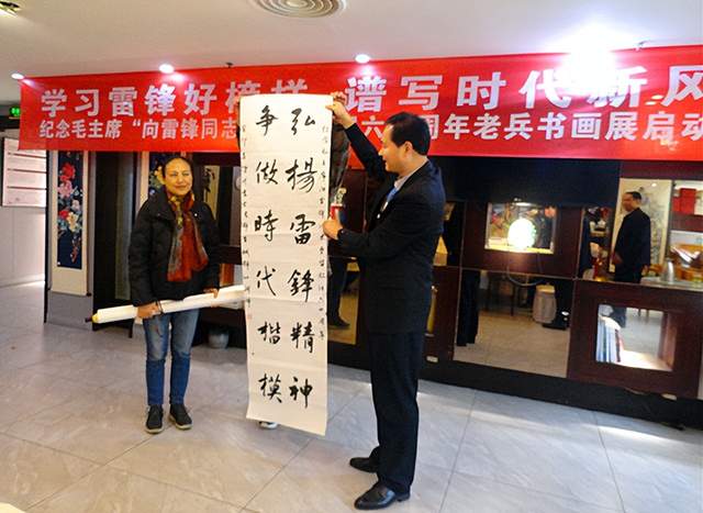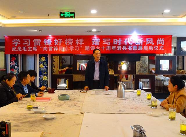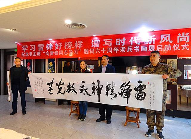 本网讯 今年是毛泽东等老一辈无产阶级革命家为雷锋同志题词60周年,在第60个学雷锋纪念日到来之际,由四川国防诗书画院、内江芭蕉展览馆、成都市青羊区人民政府草市街街道办事处、麻乡约楚菜馆、成都市军嫂创业中心、中国民生经济网等单位联合举办的“学习雷锋好榜样 谱写时代新风尚——纪念毛主席‘向雷锋同志学习’题词六十周年老兵书画展”启动仪式,于2023年3月3日在四川省成都市青羊区德盛路33号星逸酒店2楼麻乡约楚菜馆隆重举行。